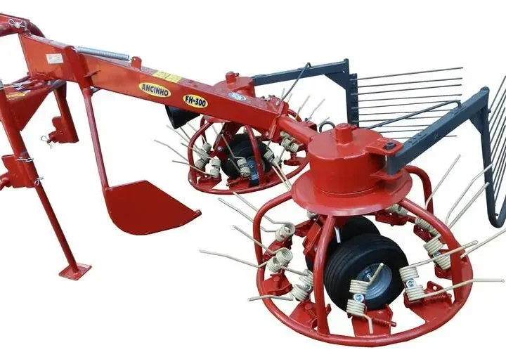 Com 2 defletores ajustáveis sendo na altura conforme o terreno e manual na largura da leira. Com cardan e embreagem