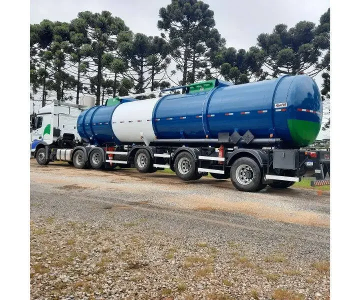 Semirreboque Tanque Aço Carbono 3 eixos distanciados, para transporte de produtos perigosos.