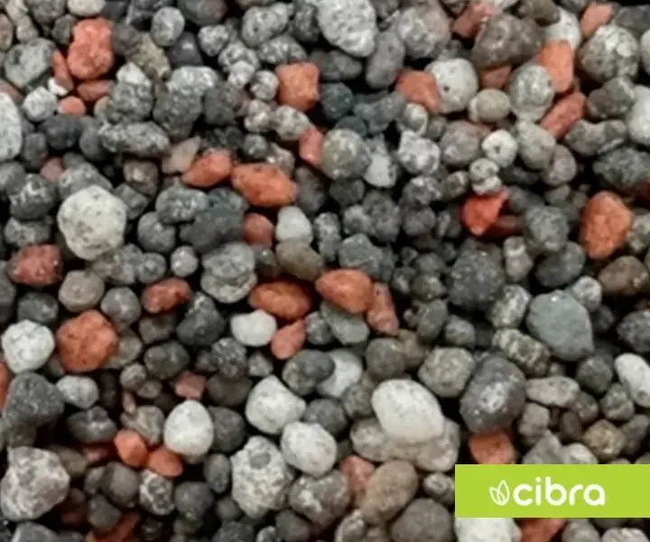 CibraMix – Fertilizante Cibra A linha de fertilizantes CibraMix traz micronutrientes incorporados aos grânulos de fósforo (P) para oferecer uma nutrição mais balanceada para toda a lavoura. Suas formulações equilibradas, garantem maior eficiência agronômica e melhor distribuição durante a aplicação, para um bom rendimento no plantio. A combinação de diversos nutrientes é capaz de suprir as deficiências e/ou necessidades de cada cultura de modo personalizado. Além de ter alta solubilidade, o fertilizante CibraMix também oferece maior flexibillidade ao agricultor, permitindo uma série de formulações NPK para se ajustar a demanda nutricional das plantas de maneira individualizada e, dessa forma, atender as mais diversas culturas. Inclusive, este fertilizante apresenta baixa segregação de grânulos, garantindo maior fluidez e uma aplicação uniforme, com menos paradas para limpeza e manutenção dos implementos, promovendo maior equilíbrio químico do solo. O CibraMix pode ser aplicado como adubação no sulco de plantio ou em cobertura, trazendo um retorno positivo para o investimento em adubação. O CibraMix é indicado para as mais diversas culturas que demandam uma nutrição completa e equilibrada, composta por macro e micronutrientes. Tipos de embalagem: Sacarias de 50kg e Big Bag 1 tonelada Você precisa de mais alguma informação? Complete seus dados no formulário de contato para que algum dos nossos vendedores possa te brindar todas as informações e consultas sobre este produto.