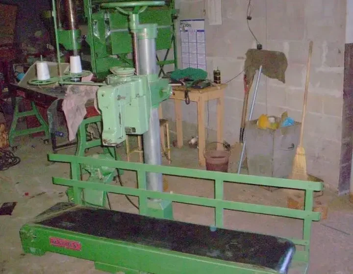 Conjunto de fechar boca de saco com costuradeira e esteira metálica: