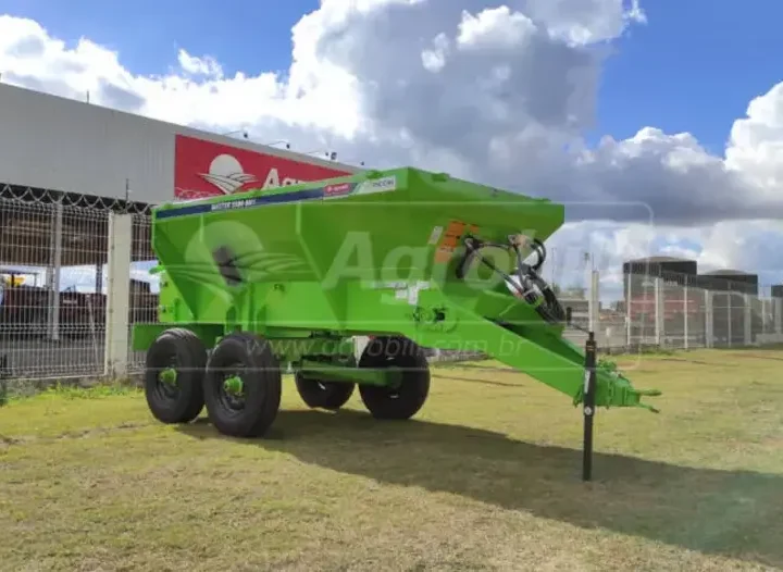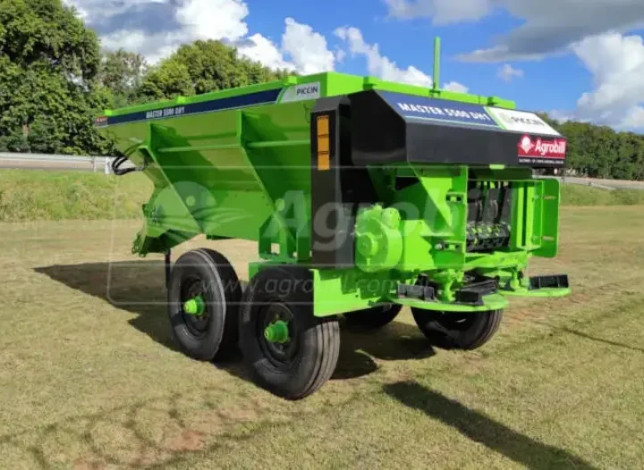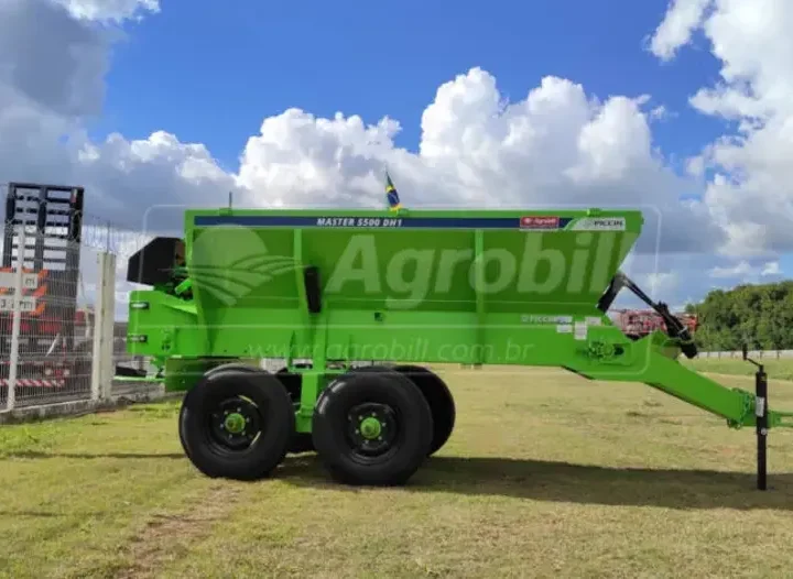Distribuidor de Calcário e Adubo Orgânico 5500 DH1 Piccin Este produto é vendido com a Esteira Precisa, que garante maior vida útil, além da multifuncionalidade, pois transporta qualquer tipo de material, mesmo que úmido. Também garante maior precisão e homogeneidade na distribuição do material. A esteira transportadora possui três opções de velocidade, que combinadas à regulagem da porta de vazão, oferecem precisão e ampla faixa de regulagem da dosagem. O sistema de carenagem da esteira transportadora, permite que o distribuidor trabalhe tanto como esteira de 80cm (orgânico), como esteira de 40cm (calcário e granulados).