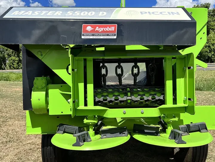 Distribuidor de Calcário e Adubo Orgânico 5500 Piccin A esteira transportadora possui três opções de velocidade, que combinadas à regulagem da porta de vazão, oferecem precisão e ampla faixa de regulagem da dosagem. O sistema de carenagem da esteira transportadora, permite que o distribuidor trabalhe tanto como esteira de 80cm (orgânico), como esteira de 40cm (calcário e granulados).