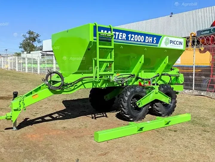 Distribuidor de Calcário e Adubo Orgânico Master 12000 DH S O bloco de controle com válvulas prioritárias possui regulagem simplificada e permite a adaptação de controle via GPS. A esteira transportadora possui três opções de velocidade, que combinadas à regulagem da porta de vazão, oferecem precisão e ampla faixa de regulagem da dosagem. O sistema de carenagem da esteira transportadora, permite que o distribuidor trabalhe tanto como esteira de 80cm (orgânico), como esteira de 40cm (calcário e granulados).