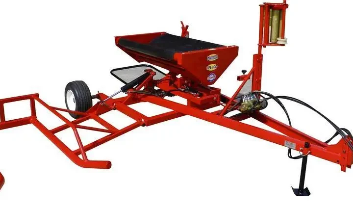 Utilizada ao reboque do trator sem o manuseio do fardo manualmente comparado com a FP-25 o modelo FPL-100 recolhe, embrulha e descarrega o fardo totalmente por sistema hidráulico controlado pelo operador no trator, de altura baixa este modelo não agride o fardo em contato com o solo obtendo como em sua mesa giratória um pistao para descarga do fardos suavemente.