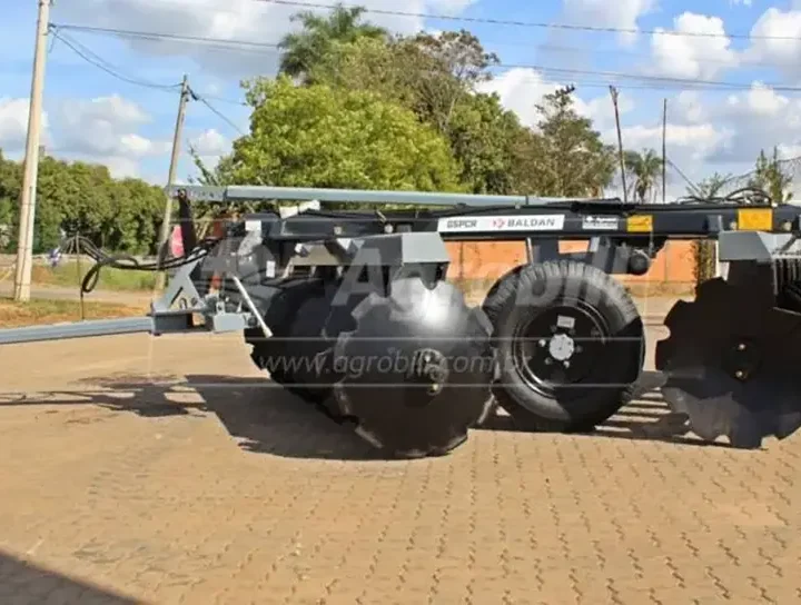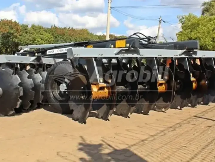 Grade Aradora Super Pesada GSPCR 18 x 36 430 mm A Grade Super Pesada Controle Remoto BALDAN GSPCR, foi projetada para encarar os mais variados desafios de gradagem, uma fusão entre desejo e necessidade fez surgir esta gigante do setor, podendo resistir as mais severas condições de trabalho.Com espaçamentos de 430 mm entre discos e estrutura de vigas tubulares feitas com aço do mais alto padrão de qualidade. Pode trabalhar em terrenos de pastagens degradadas, reforma de canaviais, áreas de primeiro ano, soqueira de algodão, dentre outras, realiza a gradagem a uma profundidade superior, fazendo com que haja uma incorporação por completo dos resíduos. A GSPCR possui cilindros que auxiliam nas manobras, controle da profundidade de trabalho e transporte entre áreas. Mais um produto com a qualidade Baldan e certificação ISO. Você precisa de mais alguma informação? Complete seus dados no formulário de contato para que algum dos nossos vendedores possa te brindar todas as informaçõe s e consultas sobre este produto.