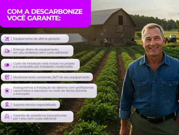 Ideal para quem deseja economizar com energia e aumentar a autonomia da propriedade, esse kit solar de 16kWp é indicado para estruturas menores ou uso residencial no campo. Instalado pela equipe técnica da Descarbonize, com suporte completo e garantia.