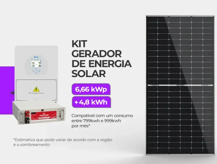 Kit Solar 6,66kWp + Bateria – Gera até 1000kwh