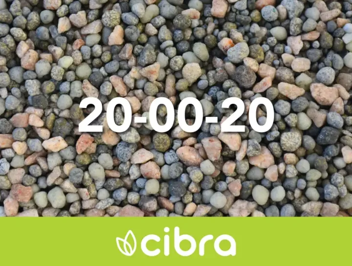 Mistura NPK Cibra 20-00-20 O NPK é uma mistura de diferentes matérias-primas, representadas aqui pelo nitrogênio (N), fósforo (P) e potássio (K). Nesta formulação 20-00-20 temos proporções iguais de nitrogênio (N) e potássio (K), os quais são requeridos em maiores quantidade devido a alta exportação via frutos colhidos das culturas, muito utilizada para culturas como café, pastagens, arroz e milho; principalmente para adubações de cobertura. Tipos de embalagem: Big Bag 1 tonelada