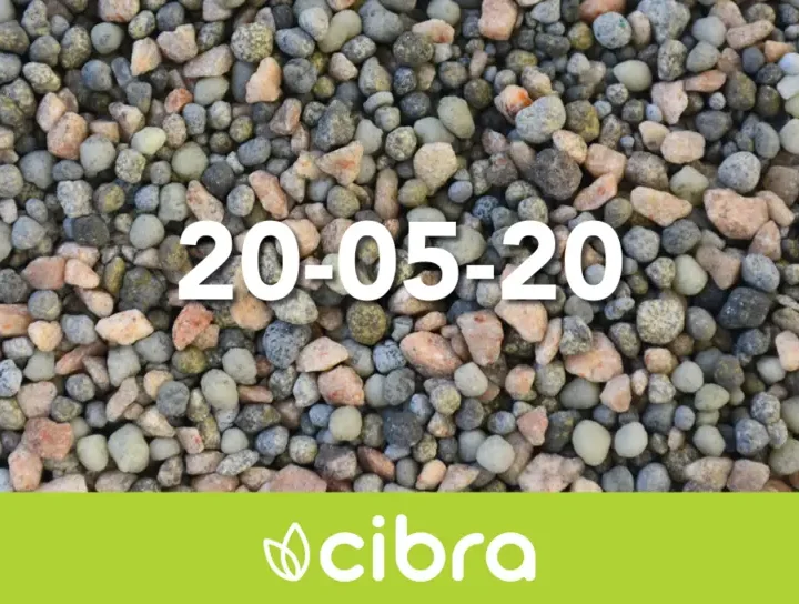 Mistura NPK Cibra 20-05-20 O NPK é uma mistura de diferentes matérias-primas, representadas aqui pelo nitrogênio (N), fósforo (P) e potássio (K). Nesta formulação 20-05-20 temos proporções iguais de nitrogênio (N) e potássio (K), os quais são requeridos em maiores quantidade devido a alta exportação via frutos colhidos das culturas; temos baixa concentração de fósforo (P) devido a baixa exportação do elemente via frutos,muito utilizada para culturas como café e pastagens. Tipos de embalagem: Big Bag 1 tonelada