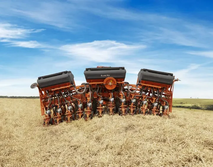 Com 3 corpos articulados entre si e range de 25 graus, além do curso do sistema pantográfico da linha de plantio, permitem que a Meridia 200 tenha ótimo desempenho em relevos ondulados e melhorando a qualidade do plantio.