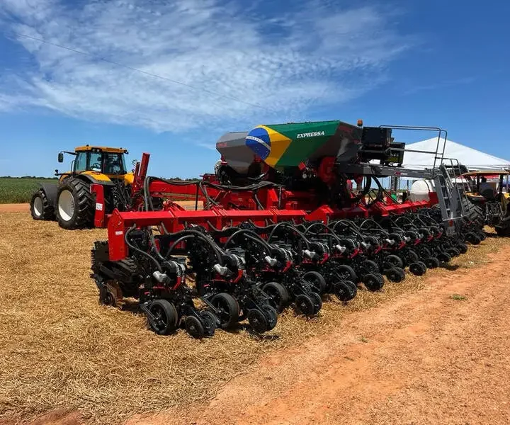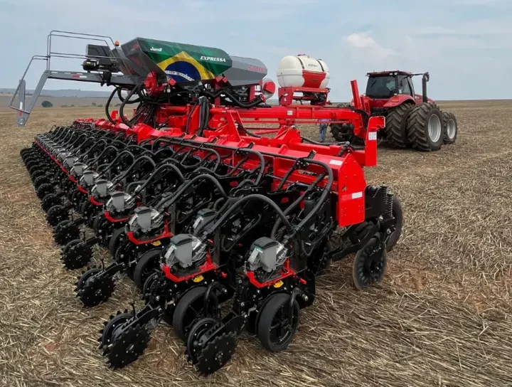 A plantadeira autotransportável Expressa Jumil conta com configurações de 29 linhas de 45cm ou 26 linhas de 50 cm. Equipada com toda a tecnologia Jumil ela conta com distribuidor Exacta Air (à vácuo), motores elétricos e molas pneumáticas. Com largura de transporte em 3,20m ela é ideal para a mudança de talhões, com capacidade de 7.000lts de sementes, possui grande autonomia. Conta também com sistema de transferência de peso do centro para as laterais, garantindo assim a capacidade de corte nas extremidades. A torre frontal conta com recurso para aumentar ou aliviar a capacidade de corte (equivalente ao calço de cilindro). Todas as rodagens são duplas com balancim para compensar ondulações do terreno, a menor distância entre os pneus e as ferramentas de solo, proporciona reações rápidas nas entradas e saídas de terraços.