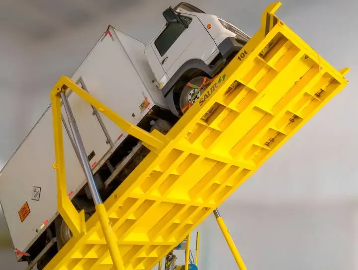 A Plataforma de Descarga Traseira de 12 metros da Saur Equipamentos SA foi desenvolvida para atender operações que exigem praticidade e eficiência na descarga de caminhões e carretas menores. Seu sistema hidráulico avançado permite a inclinação segura do veículo, facilitando o escoamento da carga por gravidade e reduzindo o tempo de operação. Construída com materiais de alta resistência, garante durabilidade, segurança e baixo custo de manutenção.