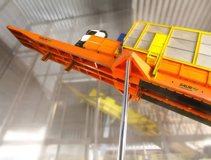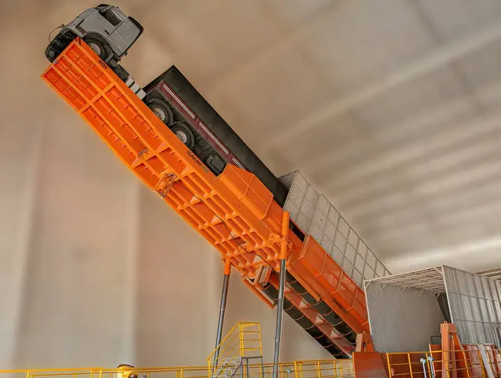 A Plataforma de Descarga Traseira de 30 metros da Saur Equipamentos SA é uma solução robusta para descarregamento rápido e seguro de grãos, fertilizantes, biomassa e outros materiais a granel. Com sistema hidráulico eficiente, inclina caminhões e carretas para escoamento da carga por gravidade, reduzindo o tempo de operação e os custos logísticos.