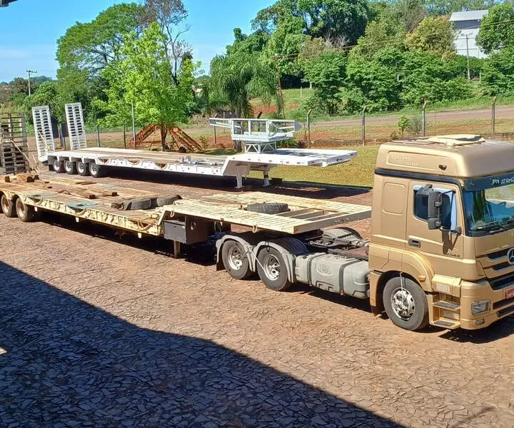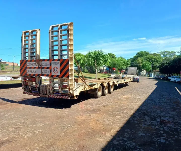 Prancha Facchini ano 2017, 3,20 de largura 4 cochos, rampa hidráulica, com pescoço com asa delta 5 metros, dimensões: 14,40m de base placa mais 5 metros de pescoço, incluso parabólica (mesa) para suporte da plataforma: