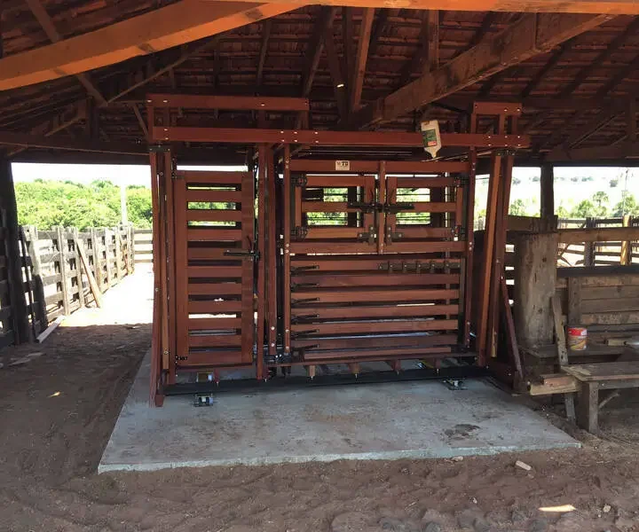 Tronco de Contenção/Brete permitindo total contenção ou imobilização do animal.