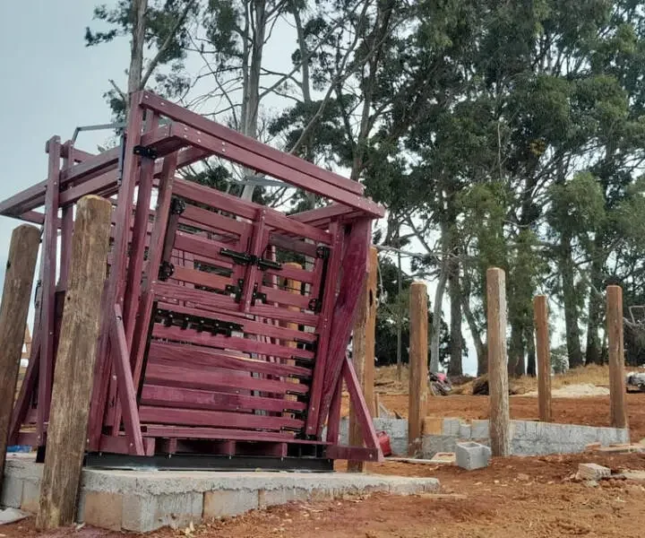 Tronco de Contenção/Brete permitindo total contenção ou imobilização do animal.