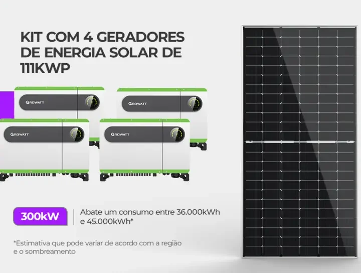 Geração estimada: De 36.000 kWh até 45.000 kWh por mês Valores podem variar de acordo com a região da instalação e o sombreamento.
